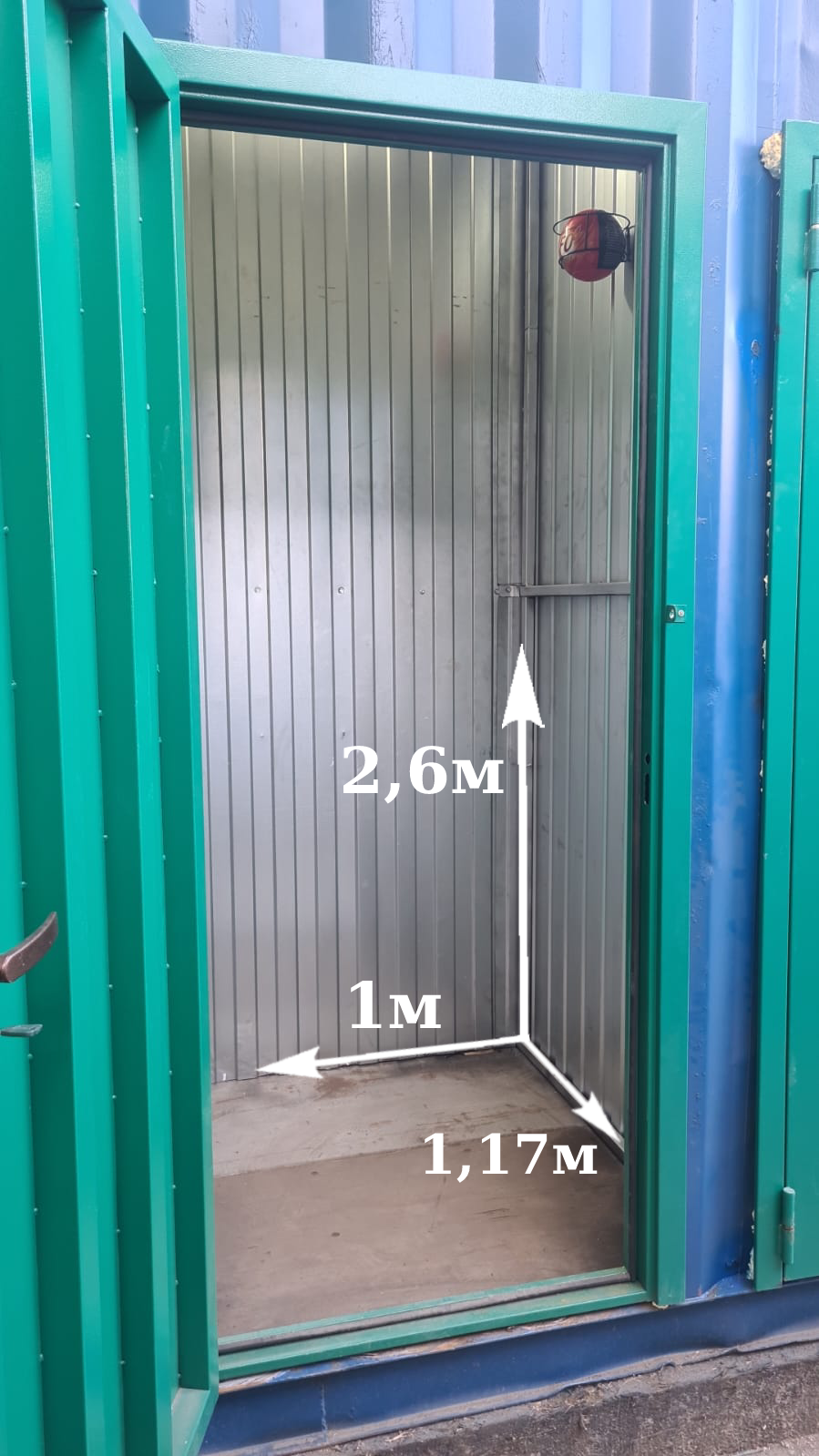 КЛАДОВКА площадью до 10 м² В АРЕНДУ Размеры: глубина 1 м, ширина 1.17 м, высота 2.6м Площадь: 1.17м² Объём: 3м³